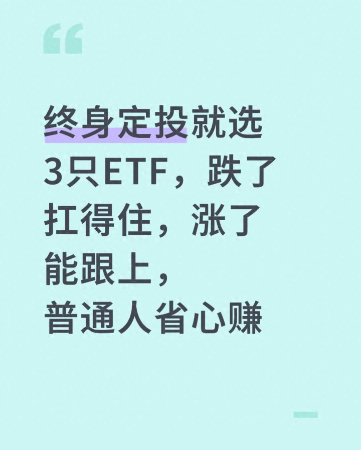 现在不少人手里有闲钱,不想存银行吃低息,又没精力天天盯盘研究股票,总问有没有能拿一辈子、省心又稳当的投资方式。其实答案很简单,选对3只底层逻辑扎实的全球ETF坚持终身定投就行,不用赌热门赛道,不用纠结短期涨跌,跌了有底气扛住,涨了也能稳稳分到收益,普通老百姓照着投,省心又能慢慢攒下财富。